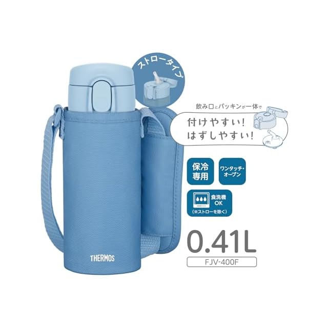サーモス 水筒 真空断熱ストローボトル 410ml アッシュブルー 子供用 通園通学 保冷専用 FJV-400F ASB