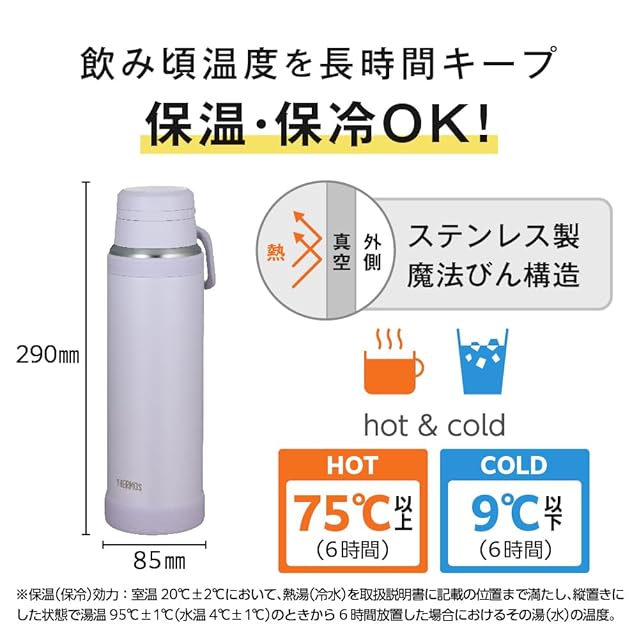 保温効力:75℃以上(6時間)/ 保冷効力:9℃以下(6時間)
