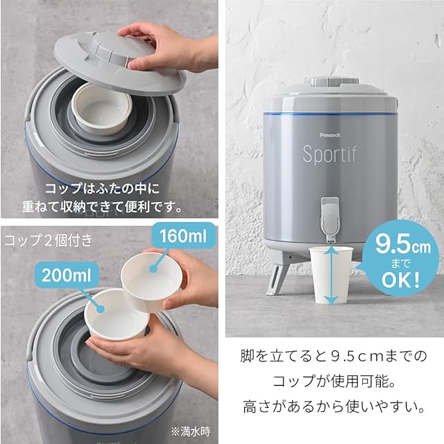 素材・材質:本体/鋼板 、フタ・コック・取っ手/ポリプロピレン、パッキン/シリコン、断熱材/発砲ポリウレタン