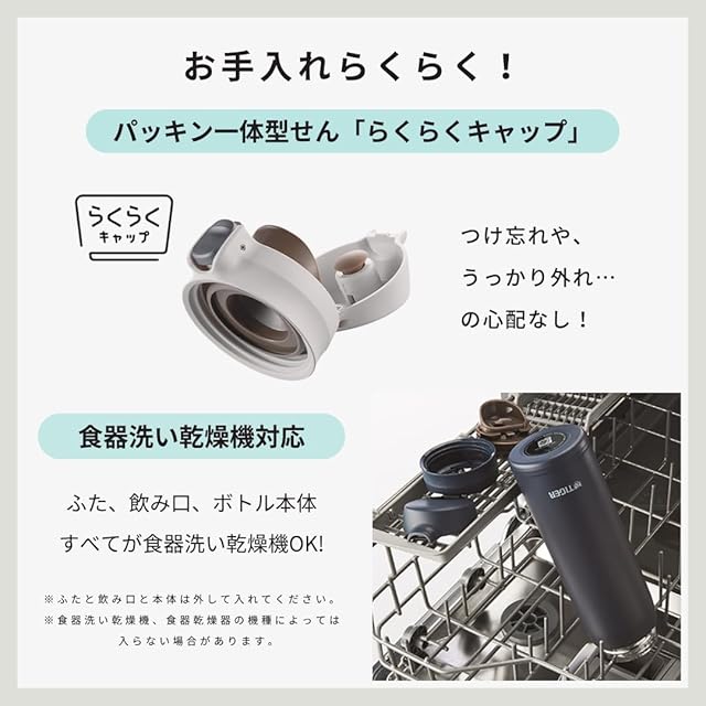 らくらくキャップで手入れ簡単 - パッキンの着脱や紛失の心配なし