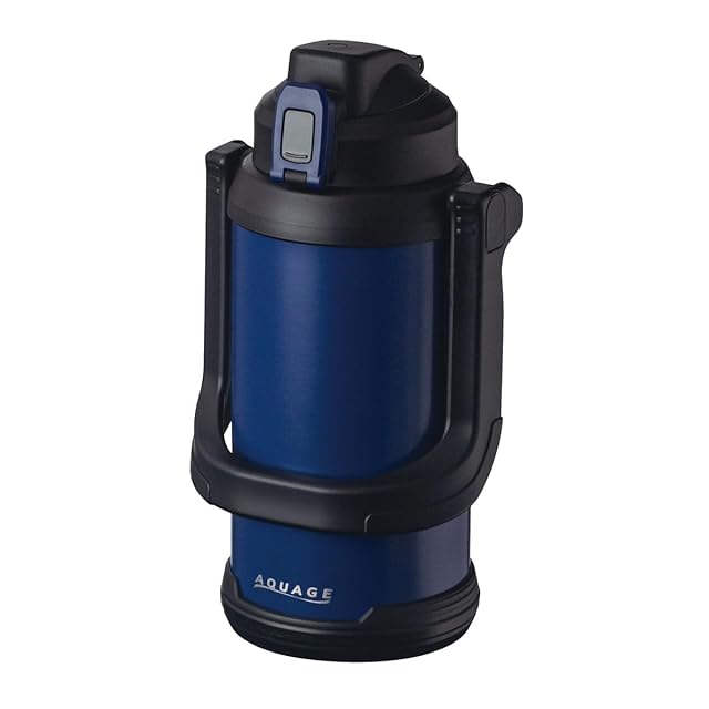 【大容量 2.2リットル】 アトラス 水筒 保冷 スポーツジャグ スポーツドリンク対応 真空断熱 ステンレス 直飲み 洗いやすい ワンタッチ 広口 手が入る ハンドル付き 持ちやすい 底プレート付き ネイビー AQUAGE アクアージュ ADJB-2200NV