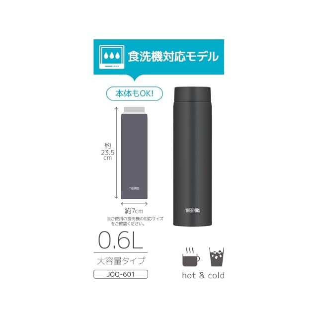 【せんとパッキン一体型・食洗機対応】 サーモス 水筒 真空断熱ケータイマグ 600ml スモークブラック 隅々まで簡単に洗える 全てのパーツ食洗機OK ステンレス ボトル 軽量コンパクト JOQ-601 SMB