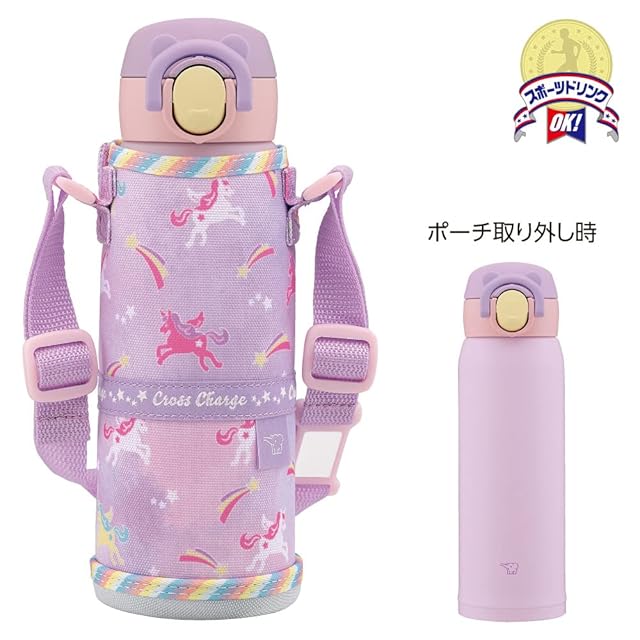 商品名:象印 水筒 480ml 【子どもが使いやすい】 洗いやすい シームレスせん キッズ 入園・入学 ポーチつき 保温・保冷 ワンタッチマグ ユニコーンパープル SM-UA48-VZ