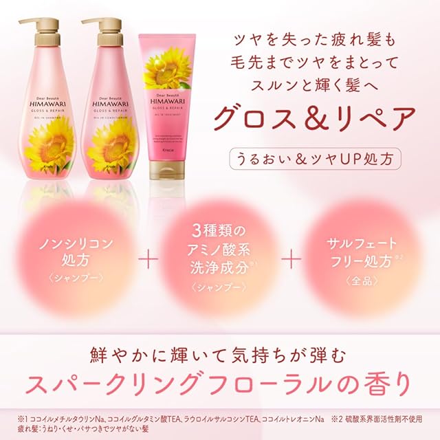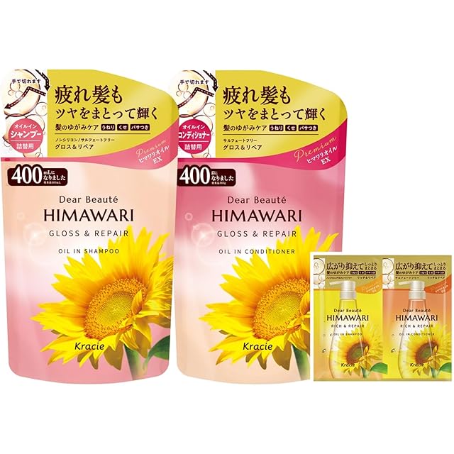 商品名:ディアボーテ 【グロス&リペア】 オイルイン シャンプー コンディショナー 詰め替え セット おまけ付き | ヒマワリ ノンシリコン アミノ酸 ヘアケア うねり くせ毛 パサつき 湿気