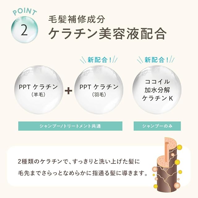 【新配合】PPTケラチンとココイル加水分解ケラチンK(シャンプーのみ)を配合し、トリプルケラチン処方に