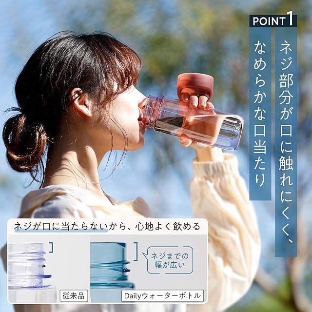 【グラスのような、なめらかな飲み心地】ネジの凹凸が口に触れにくく、厚みのあるフチのおかげで陶器やグラスのような、なめらかな飲み心地を再現。自然から着想をえた、穏やかな色のボトルはオフィスや旅行、スポーツなど、どんなひと時にもなじむウォーターボトルです。【ご注意】製品は立てた状態でご使用ください。(フタの開閉・飲み物を入れる・運ぶ際など)傾けた状態にすると、漏れてものを汚す原因になります。