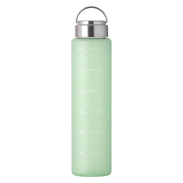 アトラス ウォーターボトル 水筒 1000ml 1リットル 直飲み メモリ付き タイムマーカー付き 持ち手付き ハンドル付き 軽量 洗いやすい 広口 大容量 スポーツボトル BPAフリー グリーン AJB-1000GR