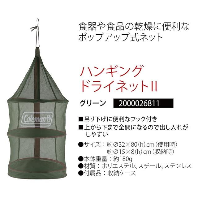 Coleman(コールマン) ハンギングドライネット2 グリーン 約180g 2000026811 アウトドア キャンプ 食器乾燥 ポップアップ ワンタッチ コンパクト収納 防虫 ドライフーズ 衛生的 収納ケース付き