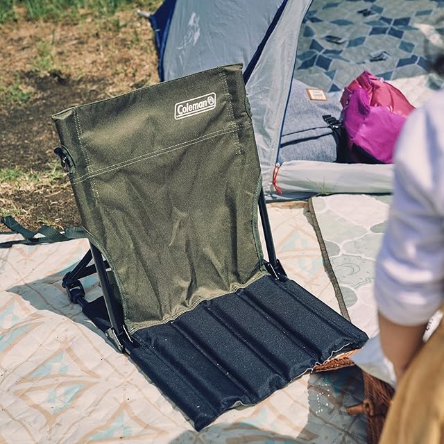 【座椅子スタイル】座面にはクッション入り、背もたれはフレーム入りでしっかり体を支えてくれるので、地べたに長時間座るシチュエーションでも疲れず快適に過ごせます。