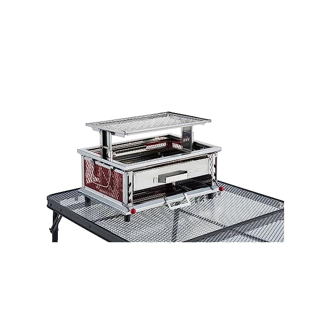 【使用シーン】アウトドア・キャンプ・BBQで活躍する、焼網の高さで火力の調節が可能な卓上グリルです。