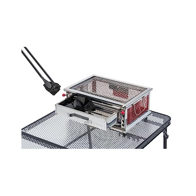 【便利な炭受け】料理中でも炭の継ぎ足しがしやすい、引き出し式ロストル(炭受け)となっています。使用後は、ロストルだけ取り外して灰を捨てることができますので後片付けも簡単です。