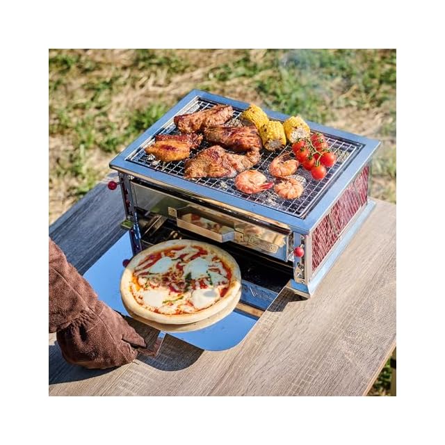 【オーブンとしても使用可能】下部にも調理スペースが設置されており、炭の熱を活用し簡易オーブンとしても使用可能でピザや焼きおにぎりなどの調理も可能です。