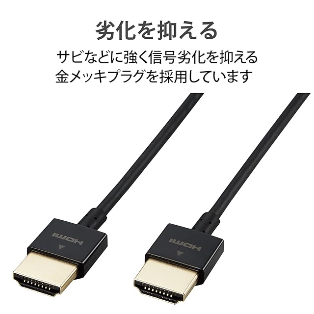 ケーブル直径約3.2mmで取り回しがしやすく、すっきり配線できる、スーパースリムタイプのイーサネット対応ハイスピードHDMIケーブルです。