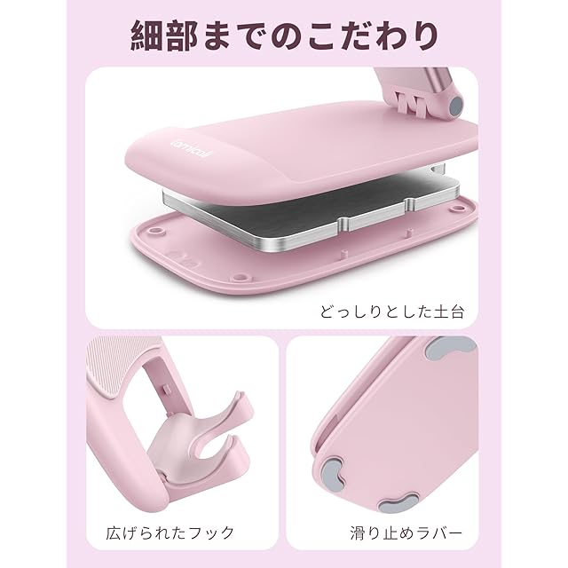 商品名:Lamicall 折り畳み 高さ調整 スマホスタンド 伸縮 : スマートフォン 角度 折りたたみ 携帯 アイホン 立て 置き 台 卓上 机 つくえ テーブル デスク 縦 横 滑り止め コンパクト アイフォン スマフォ アンドロイド iPhone 16 15 14 plus pro promax 13 mini 12 プロ マックス se Huawei Xperia android に対応 ピンク