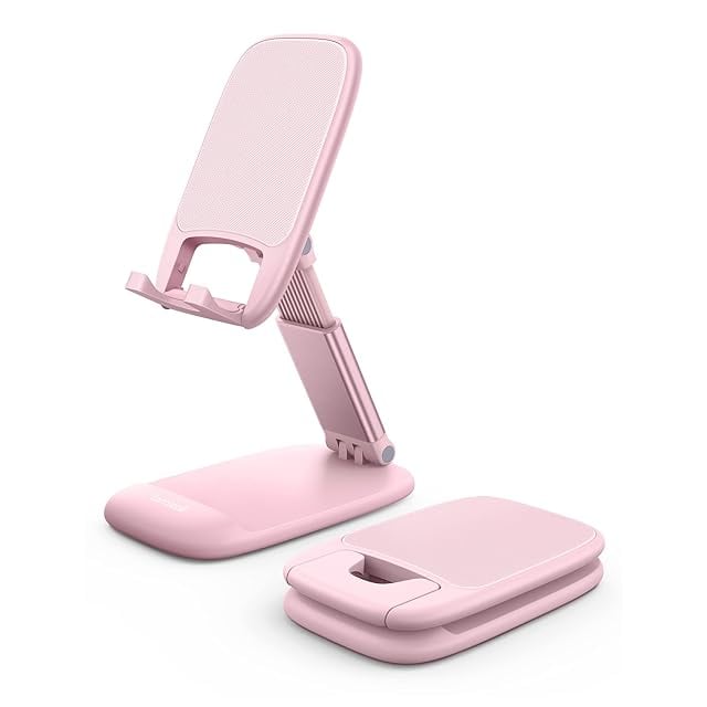 Lamicall 折り畳み 高さ調整 スマホスタンド 伸縮 : スマートフォン 角度 折りたたみ 携帯 アイホン 立て 置き 台 卓上 机 つくえ テーブル デスク 縦 横 滑り止め コンパクト アイフォン スマフォ アンドロイド iPhone 16 15 14 plus pro promax 13 mini 12 プロ マックス se Huawei Xperia android に対応 ピンク