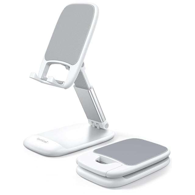 Lamicall 1個セット 折り畳み 高さ調整 スマホスタンド 伸縮 : 角度 折りたたみ 携帯 アイホン すまほ スマホ 立て 置き 台 卓上 机 つくえ デスク 縦 横 滑り止め コンパクト アイフォン スマフォ アンドロイド iPhone 16e 16 15 14 plus pro promax 13 mini プロ マックス se Huawei Xperia android に対応 白