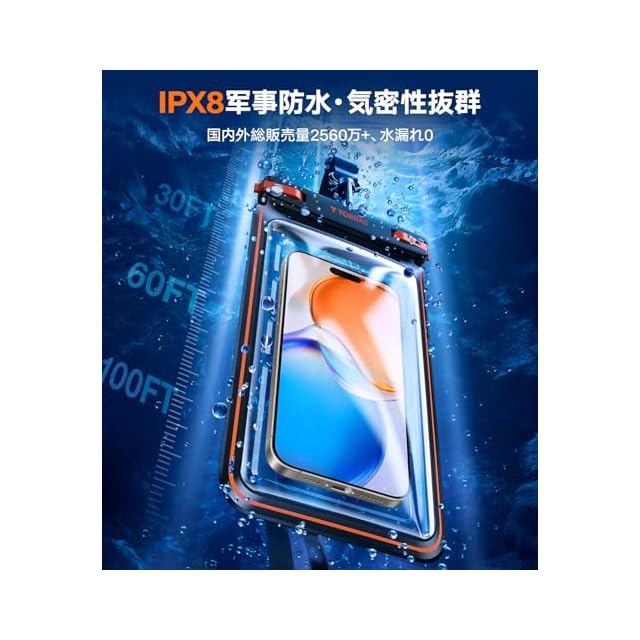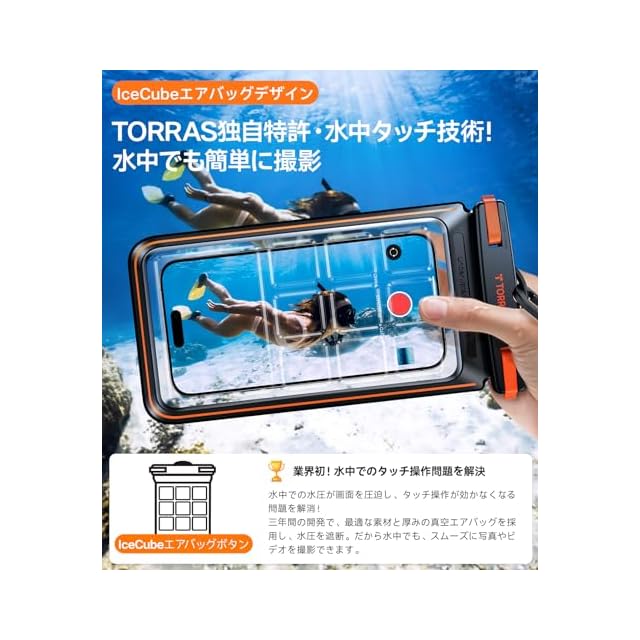 【防水ケース性能第 1 位!TORRAS だけがこの基準を達成】2025 年全面アップグレード!最高水準を達成!①最新シールドテクノロジーで良品率 97% ②95A TPU 素材で耐摩耗・高透明 ③精密 ABS ロックヘッドで水漏れゼロ!夏のプールでは子供との水遊びを記録し、浴室では泡だらけの手でもスムーズに操作。365 日品質付きで、安心して海や温泉に持ち込もう!