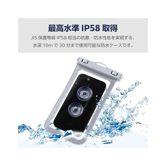 商品名:エレコム スマホ 防水ケース お風呂 IPX8 水深10m 吸盤付き [ iPhone 16e / 16シリーズ / 15シリーズ / 14シリーズ /SE3 など、6.9インチ以下のスマートフォン対応] ホワイト P-WPSB04WH