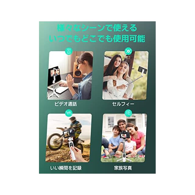【4-in-1自撮り棒】自撮り棒は三脚を内蔵したタイプで、手持ちのセルフィーだけでなく、三脚 スマホスタンドとして動画鑑賞、集合写真、生放送、オンライン会議などにも適用です。用途の広いデザインにより、1/4ネジを付き、デジカメ用スタンド、アクションカメラ じどり棒、または生放送用リングライト 三脚としても使用できます。無期限のカスタマーサポートで、万が一製品に関する問題ありましたら、弊店にご連絡頂ければ弊社より早速に解策をご案内します!
