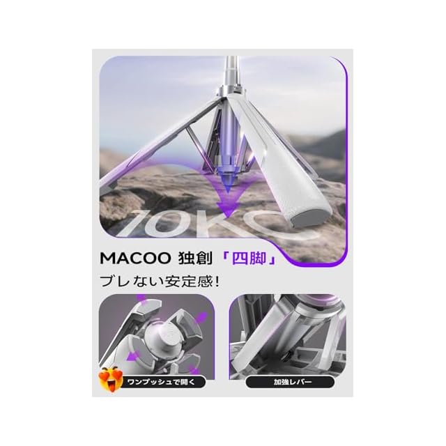 【全機種フィット&MACOO正規品だけの信頼感】セルカ棒のホルダーは幅65mm〜105mmのスマートフォンに対応し、小型機種から大画面モデルまでしっかり固定。市場には見た目が似た模倣品もありますが、固定力や耐久性はMACOO正規品と大きく異なります。模倣品では撮影中にスマホがずれたり、最悪の場合は落下してしまうことも…。大切な旅行やイベントの思い出を守るため、ぜひMACOO正規品をお選びください。万が一製品に不具合があれば、いつでもご連絡ください。無制限のカスタマーサポートで迅速に対応いたします。