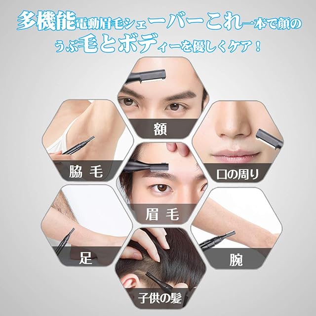 【多機能フェイスシェーバー&多彩なマユコーム】長さ2種類があるマユコームが付き、眉毛の形作りから、長さ調整まで、理想の眉カットが簡単にできます。眉毛を整えることだけではなく、口の周りや全身のムダ毛「頬・もみあげ・足・腕・ビキニレイン・子供の髪」などを処理できる多機能です。*口の周りの柔らかい雑毛にのみ適しています。硬いひげには電動シェーバーを使用してください。【ご注意:マユコームの長さは2mm/5mmですが、眉毛の長さが2mmを超える場合にご使用ください。】【ご注意:マユコームを使用して長さをトリミングする場合は、眉毛に逆らうことをお勧めします。】
