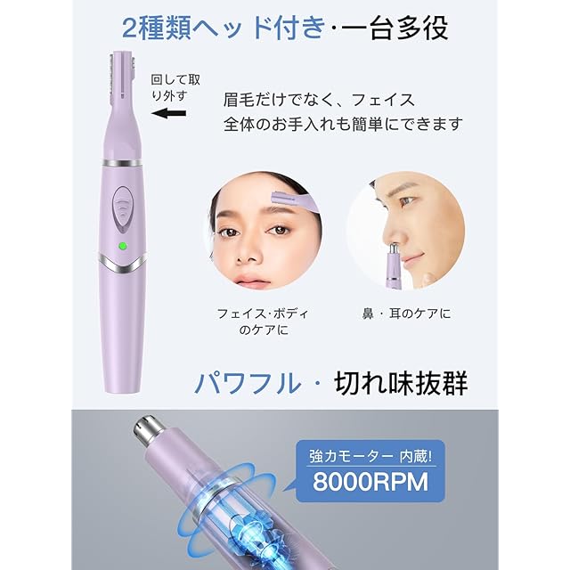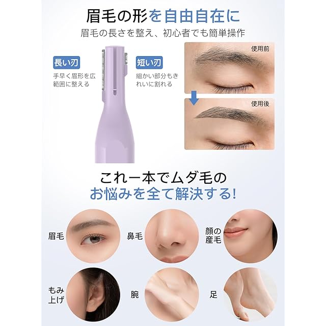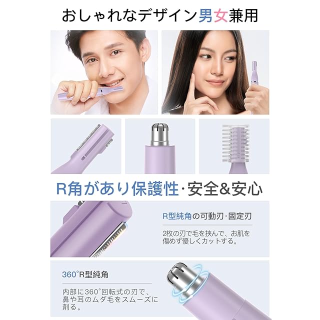 商品名:【新登場&1台多役】眉毛シェーバー メンズ USB充電式 鼻毛カッター & レディース 眉毛カッター 顔剃り 産毛剃り エチケットカッター 耳毛カッター 耳毛処理 まゆげそり メンズ IPX7防水 水洗いOK まゆげ シェーバー 顔そり 多機能電動 低騒音 男女兼用 敬老の日 母の日 父の日誕生日 クリスマス 記念日 プレゼント 眉用コーム付属 日本語取扱説明書付き (パープル)