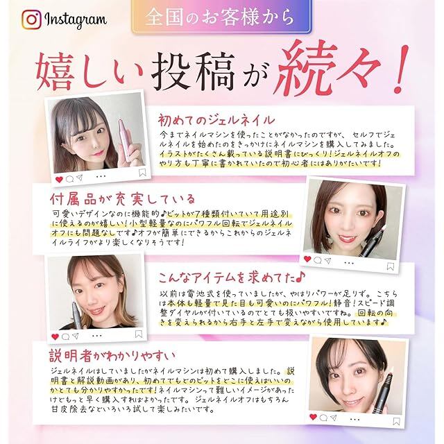 【登録者数75,600人突破!人気YouTuberが監修】人気YouTuberネイリストのASKAさん監修「初めてのネイルオフだから心配・・・。」「指先を傷つけてしまいそうで怖い・・・。」そんなお悩みをお持ちの方にも安心してお使い頂けるよう、ジェルネイルオフの基本操作から甘皮処理などの指先のケアまで、分かりやすい解説動画をお付け致します。取扱説明書と解説動画を見ればジェルネイルを始めたての初心者さんでも簡単にお使い頂けます。