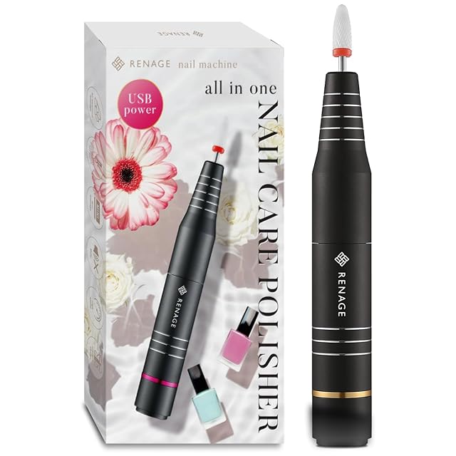 RENAGE ネイリストYoutuberが監修 ネイルマシン ジェルネイル オフ 電動ネイルマシン リムーバー ビット ネイルケア 爪磨き 甘皮処理 セルフ 正逆回転 USB給電 セルフオフ サロン プロ仕様 ブラック