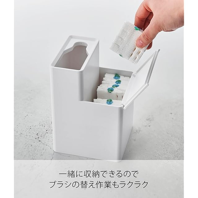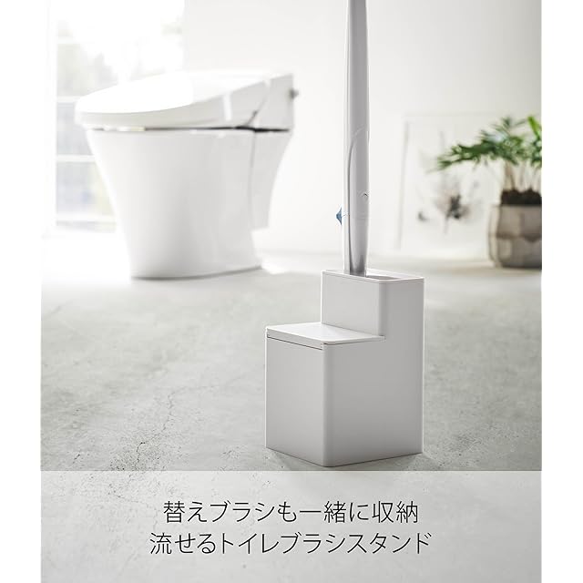 山崎実業(Yamazaki) 替えブラシ 収納付き 流せるトイレブラシ スタンド ホワイト 約W11XD12XH17cm タワー tower トイレブラシケース トイレ掃除 5722