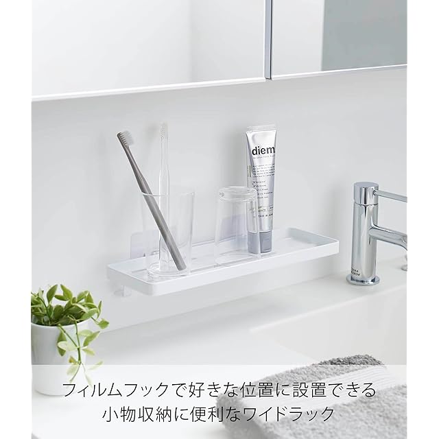 商品名:山崎実業(Yamazaki) フィルムフック サニタリーラック ホワイト 約W30XD11.5XH4.7cm(フィルムフック含まず) タワー tower 浮かせる収納 洗面収納 5397
