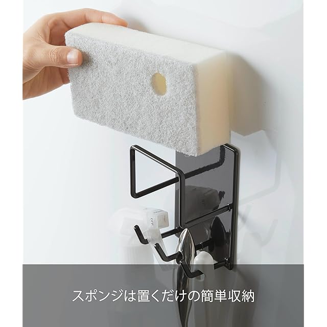 商品名:山崎実業(Yamazaki) マグネットバスルームクリーニングツールホルダー ブラック 約W8XD6XH12cm タワー 浴室ラック お風呂掃除収納 4977