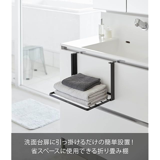 山崎実業(Yamazaki) 引っ掛け 折り畳み棚 ブラック 使用時:W37×D28.5×H25cm タワー tower 洗面所 収納ラック タオルラック 折りたたみラック 1619