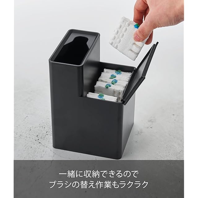 山崎実業(Yamazaki) 替えブラシ 収納付き 流せるトイレブラシ スタンド ブラック 約W11XD12XH17cm タワー tower トイレブラシケース トイレ掃除 5723