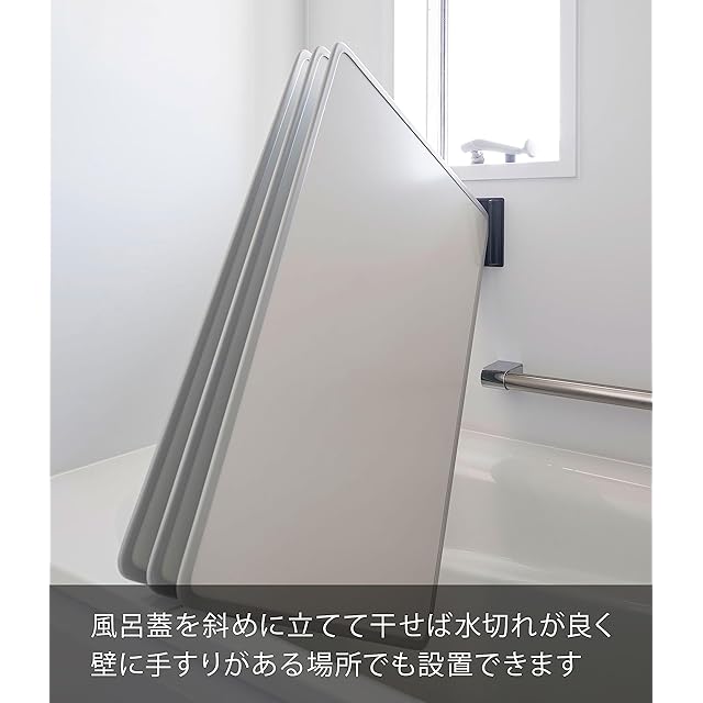 耐荷重:約4kg ・対応サイズ:収納可能な風呂蓋 厚み約2.5cm以内の風呂蓋3枚組まで
