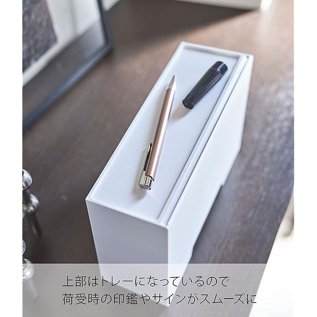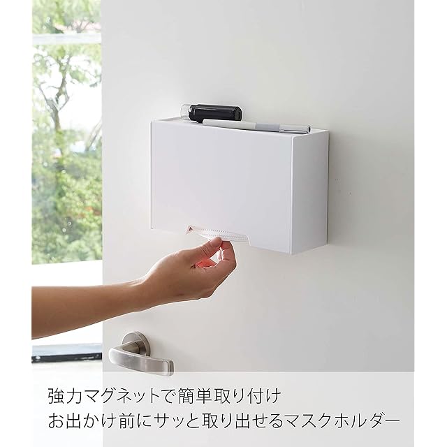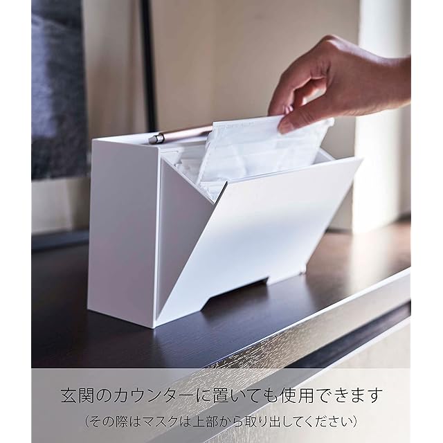 商品名:山崎実業(Yamazaki) ツーウェイ マスク収納 ケース ホワイト 約W22XD7.5~14XH14cm スマート フラップ式 マスク補充簡単 5443
