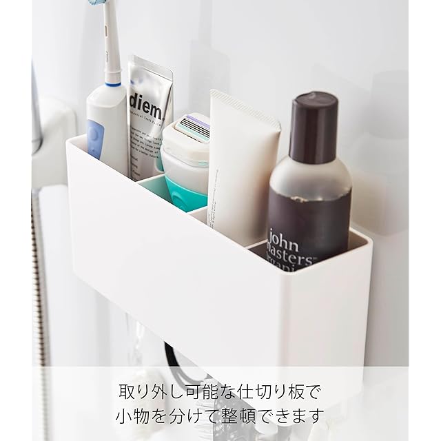 商品名:山崎実業(Yamazaki) マグネットストレージボックス ワイド ホワイト 約W24.5XD7.2XH10.5cm タワー tower 小物収納 仕切りあり フック付き 4844