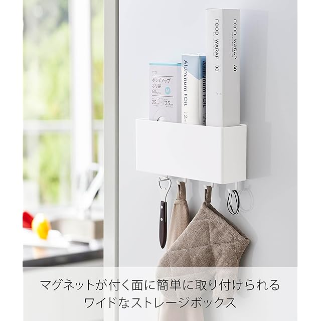 山崎実業(Yamazaki) マグネットストレージボックス ワイド ホワイト 約W24.5XD7.2XH10.5cm タワー tower 小物収納 仕切りあり フック付き 4844