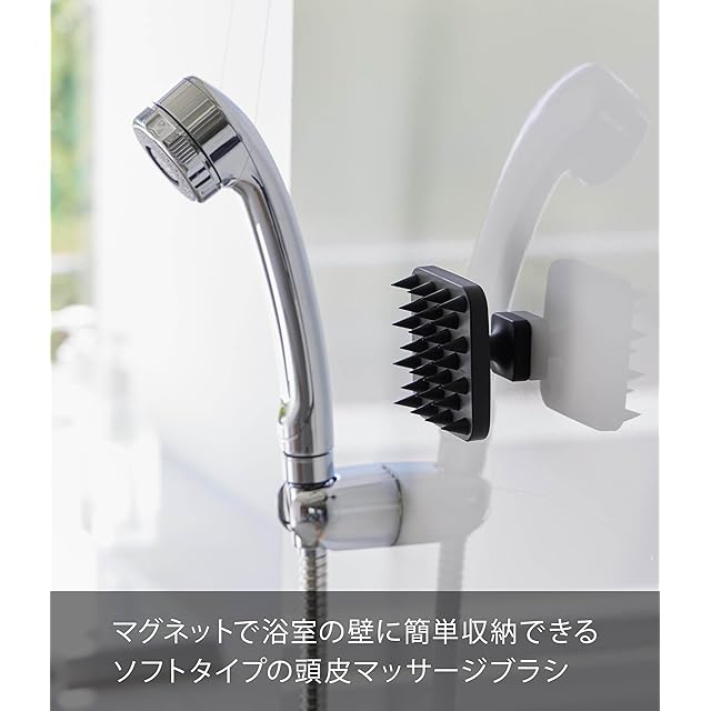 山崎実業(Yamazaki) マグネット 頭皮マッサージブラシ ハンドル付き ソフトタイプ ブラック 約W7×D7×H5cm タワー tower 浮かせて収納 スカルプブラシ ヘッドマッサージ 1770