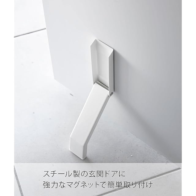 商品名:山崎実業(Yamazaki) マグネット 折り畳みドアストッパー ホワイト (使用時)約W4.5×D7×H28cm タワー tower 強力マグネット 簡単取付 玄関ドア 片足で操作可能 3720