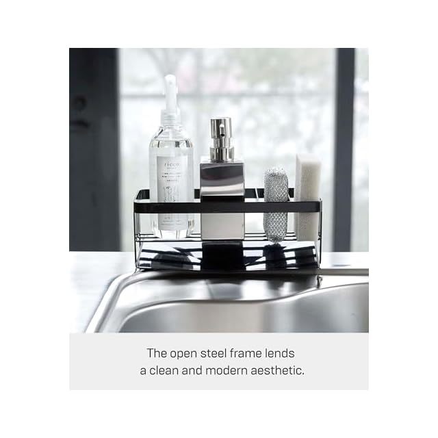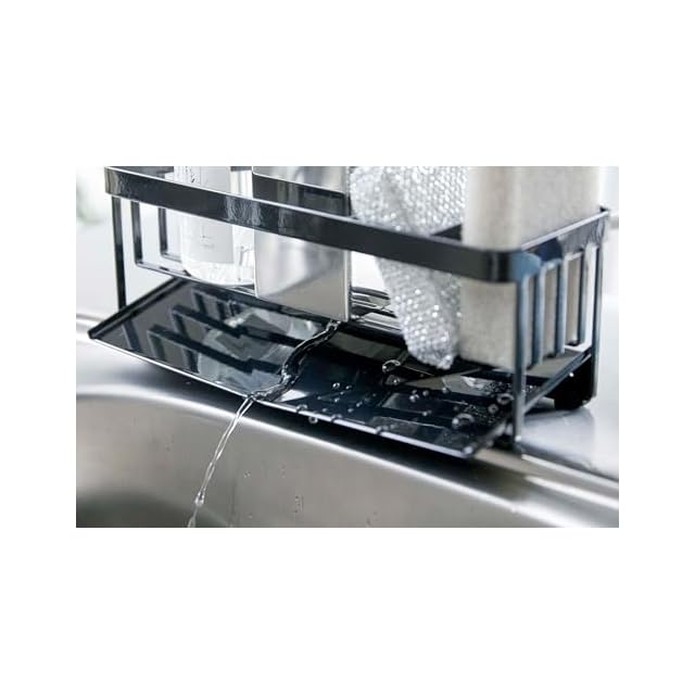 山崎実業(Yamazaki) 水が流れる スポンジ&ボトルホルダー ブラック 約W25×D10×H9.5cm タワー tower スポンジラック スポンジ置き 水切り機能 5017