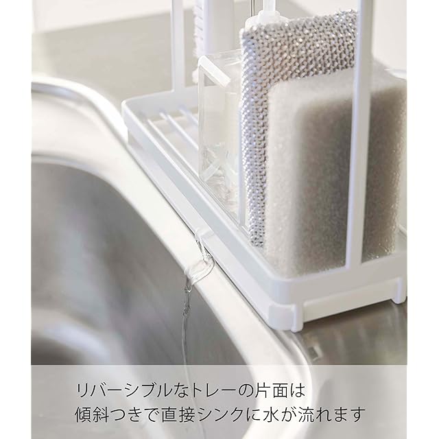 商品名:山崎実業(Yamazaki) スポンジ&クリーニングツールスタンド ホワイト 約W25XD9XH24.5cm タワー 両面仕様トレー スポンジラック ツールフック 4993