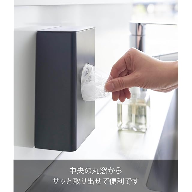 山崎実業(Yamazaki) マグネット 水切りネット ホルダー ブラック W12.2×D6.7×H17.7cm タワー tower 取り出しやすい 収納ボックス 収納ケース 1716