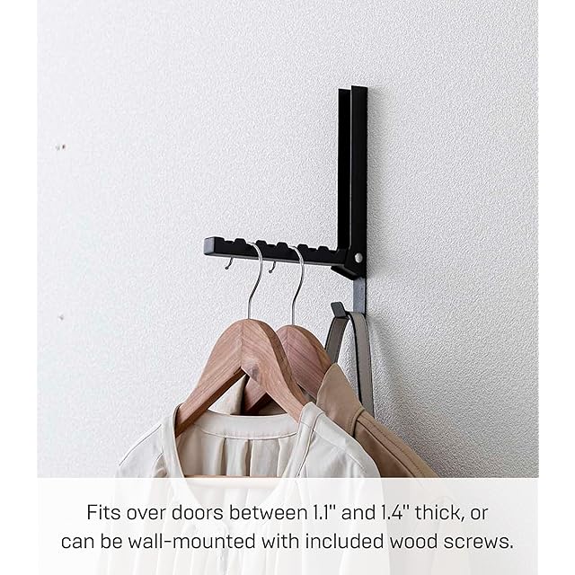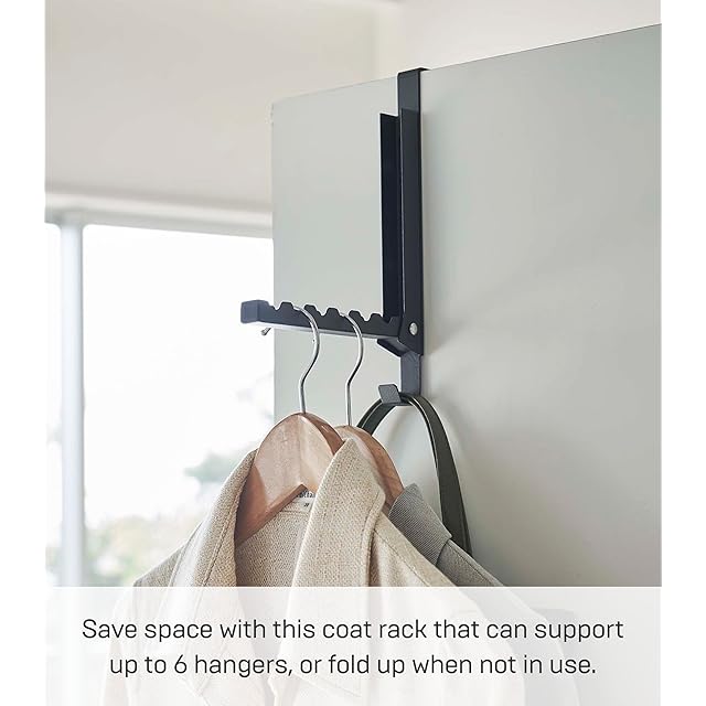 商品名:山崎実業(Yamazaki) 使わない時は収納できる ドアハンガー ブラック 約W2XD20.5XH23.5cm(使用時) タワー 折り畳み スッキリ収納 簡単設置 5515