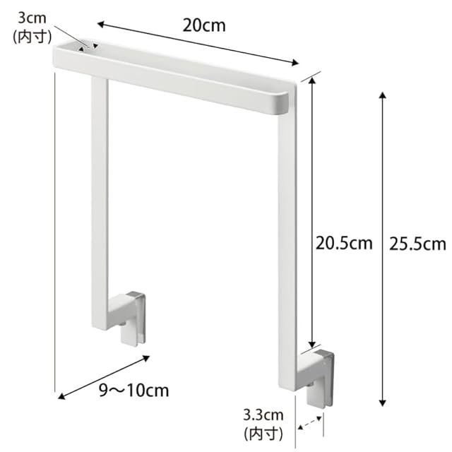 商品サイズ:約W20×D9~10×H25.5cm ・内寸:タオル収納部:約W19.5×D3cm 設置時のタオル収納部の高さ:約20.5cm