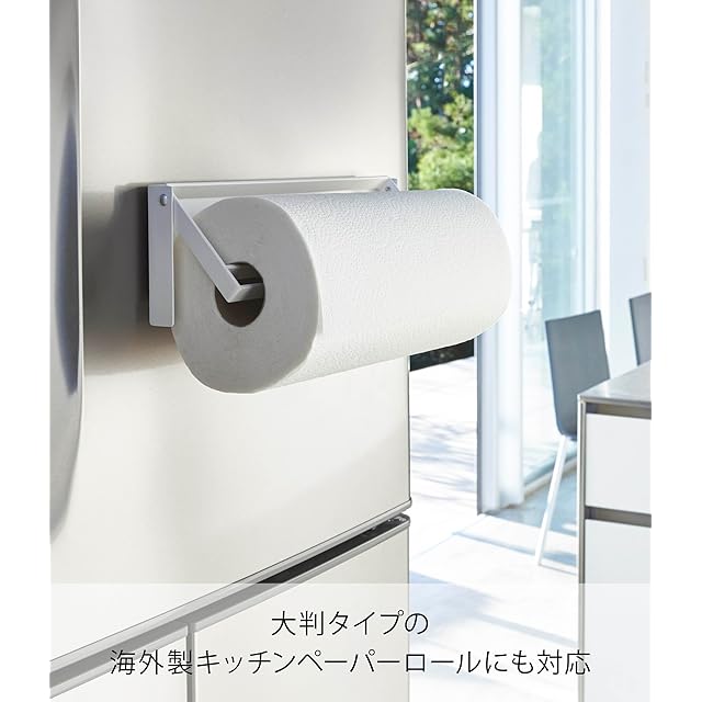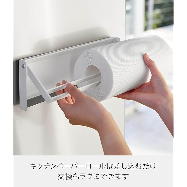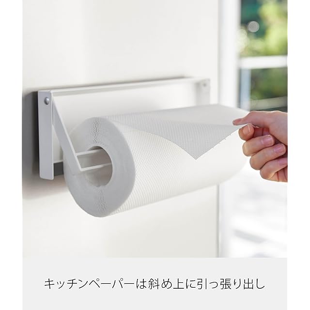 山崎実業(Yamazaki) 片手でカットマグネットキッチンペーパーホルダー ホワイト 約W30.5XD2.5XH9.5cm プレート 海外製の大判タイプにも対応 4943