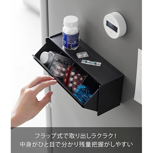 山崎実業(Yamazaki) マグネット お薬&サプリメント 収納ケース ブラック 本体:W26×D8×H10.6cm タワー tower 浮かせる収納 薬ケース 1358