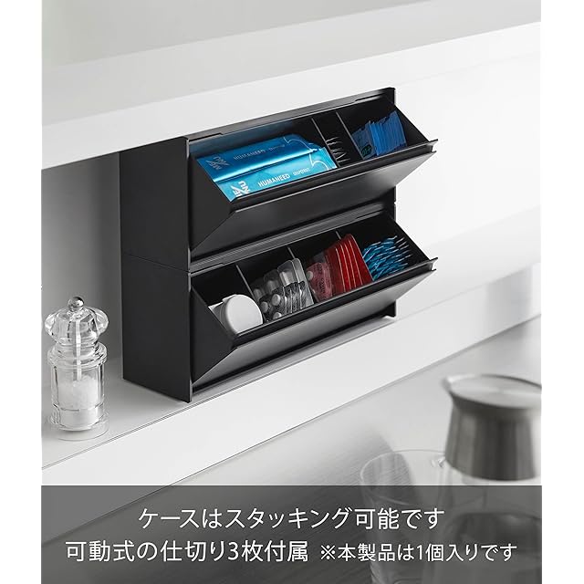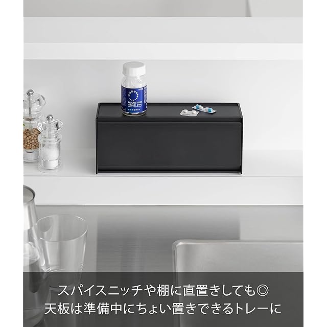 商品名:山崎実業(Yamazaki) マグネット お薬&サプリメント 収納ケース ブラック 本体:W26×D8×H10.6cm タワー tower 浮かせる収納 薬ケース 1358