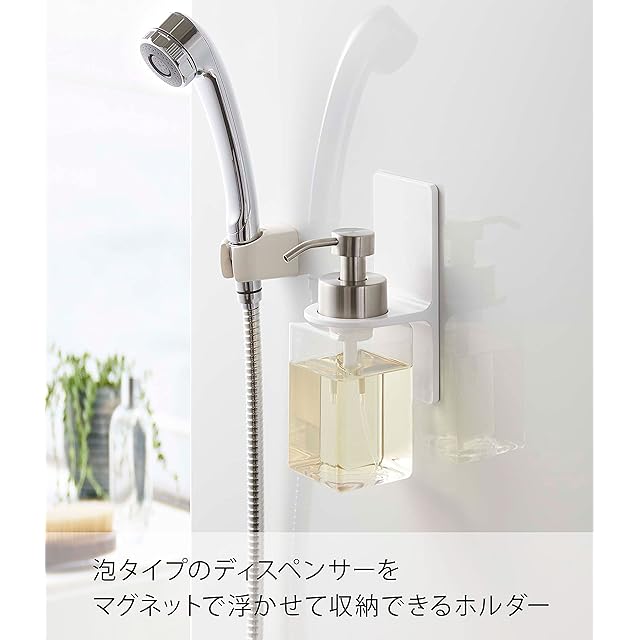 山崎実業(Yamazaki) マグネット ディスペンサーホルダー 泡タイプ ホワイト 約W7XD9XH17cm ミスト 浮かせて収納 簡単取付 5350