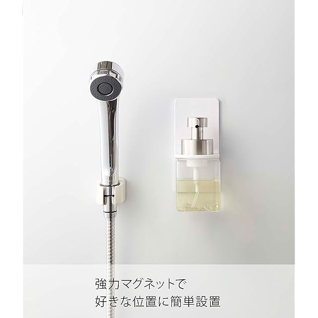 商品名:山崎実業(Yamazaki) マグネット ディスペンサーホルダー 泡タイプ ホワイト 約W7XD9XH17cm ミスト 浮かせて収納 簡単取付 5350