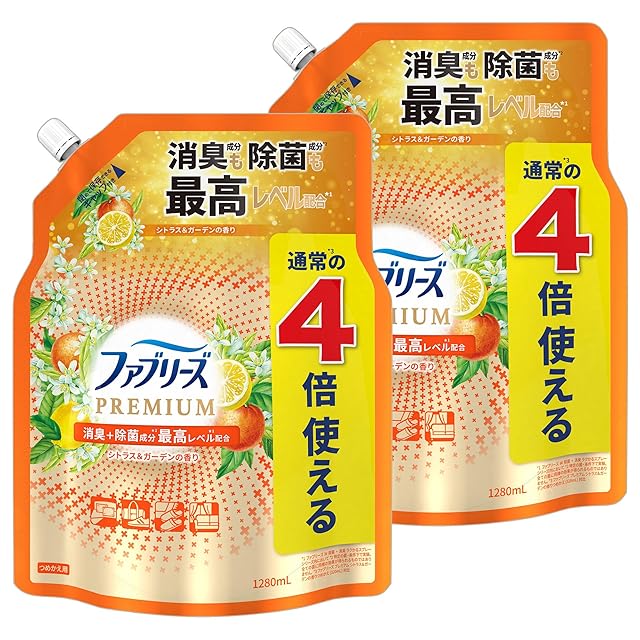 ファブリーズ 【まとめ買い】 消臭スプレー 布用 PREMIUM シトラス&ガーデン 詰め替え 4回分 1280mLx2袋